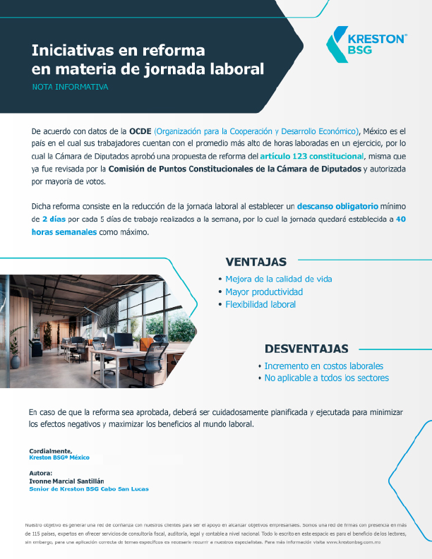 Autora: Ivonne Marcial Santillán – Senior de Kreston BSG Cabo San Lucas
